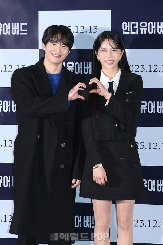 [헤럴드POP=민선유 기자]배우 신수항, 이윤우가 6일 오후 서울 용산구 한강로 CGV 용산점에서 진행된 영화 '언더 유어 베드' 언론시사회 및 기자간담회에 참석해 포토타임 촬영에 임하고 있다.