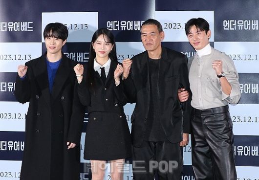 [헤럴드POP=민선유 기자]배우 이지훈, 이윤우, 신수항과 SABU 감독이 6일 오후 서울 용산구 한강로 CGV 용산점에서 진행된 영화 '언더 유어 베드' 언론시사회 및 기자간담회에 참석해 포토타임 촬영에 임하고 있다.