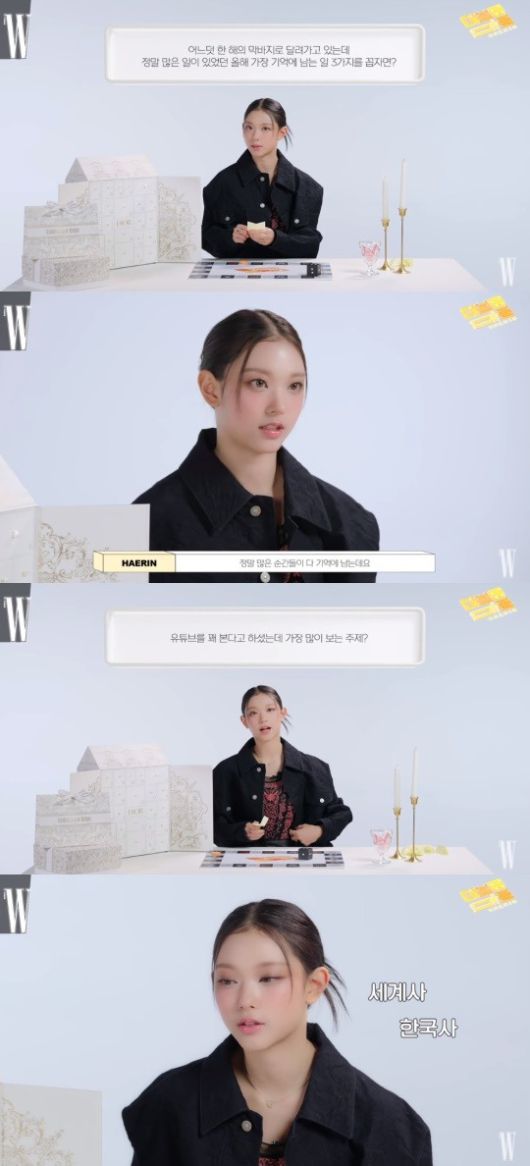 6일 유튜브 채널 'W KOREA'에는 "'너.. OO가 누구야?' 뉴진스 해린이 팬들에게 물어보고 싶은 질문은?"이라는 제목의 영상이 게재되었다.