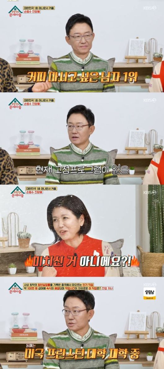 과거 진양혜의 인기에 대해 이야기하자 손범수는 "(진양혜) 주변에 파리들이 너무 꼬였다. 내가 빨리 구원해주지 않으면 이 사람이 시험에 들 것 같았다"고 너스레를 떨었다.
