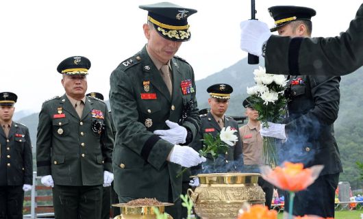 해병대 채수근 상병 순직 1주기를 하루 앞둔 18일 오전 임성근 해병대 전 1사단장이 국립대전현충원 채수근 상병 묘소를 찾아 헌화하고 있다. 연합뉴스 |