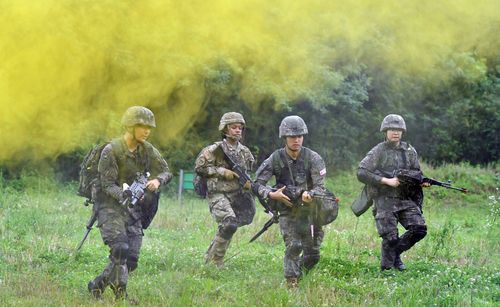 (서울=연합뉴스) 김호준 기자 = 한국과 미국의 학생군사교육단(학군단·ROTC) 후보생들이 지난해에 이어 올해도 충북 괴산 소재 육군학생군사학교에서 동반 훈련을 실시했다고 육군이 19일 밝혔다.