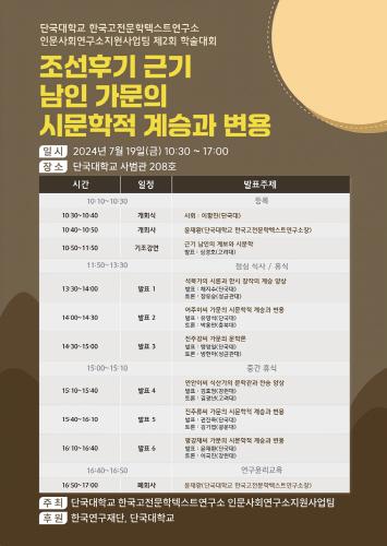 '조선 후기 근기 남인(南人) 가문의 시문학적 계승과 변용'을 주제로 학술대회를 개최 포스터. /단국대 |