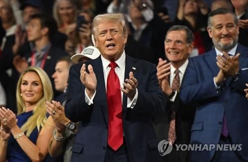 미 공화당 전당대회에서 박수치는 트럼프 전 대통령 |