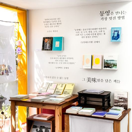 추천하는 독서 명소는 카페 ‘내성적싸롱 호심’. 책방과 100m 거리로, 일러스트레이터 ‘밥장’이 오래된 주택을 고쳐 운영하는 카페다. 주인장이 직접 굽는 르뱅쿠키가 명물이라고. 감성 사진관 ‘모노드라마’에서 사진을 찍는 것도 좋다. 촬영 후 원하는 문구를 캘리그라피로 장식할 수 있어 여행의 추억을 담아가기 좋다. 책방 바로 옆 전혁림미술관에서는 전혁림 화백과 아들 전영근 화백이 그린 시원하고 푸르른 통영 바다를 감상할 수 있다.