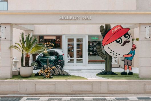 지난 달 말본골프는 크리에이티브 디자인 스튜디오 '슈퍼픽션'과 협업한 티셔츠 컬렉션 출시 기념으로 강남 도산대로에 위치한 플래그십스토어 '말본6451' 외관을 슈퍼픽션의 감각적인 일러스트로 꾸몄다.