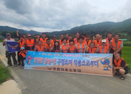 이에 앞서 장마철과 여름 휴가철을 맞아 두촌면 지역의 산간계곡에 관광객들이 찾아오고 있는 만큼 ‘우리 가족 다함께 구명조끼 입기 캠페인’으로 구명조끼 착용을 통한 안전한 물놀이를 홍보했다.