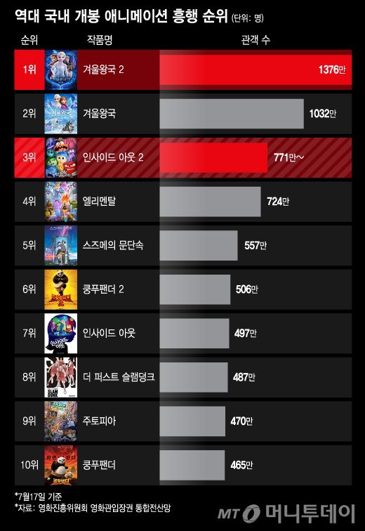 역대 국내 개봉 애니메이션 흥행 순위/그래픽=윤선정 |