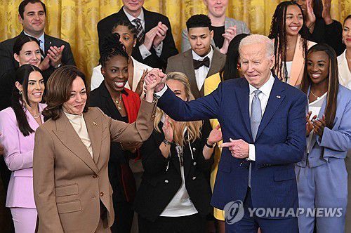 조 바이든 미국 대통령과 카멀라 해리스 부통령[AFP=연합뉴스 자료사진] ▶제보는 카카오톡 okjebo▶연합뉴스 앱 지금 바로 다운받기~▶네이버 연합뉴스 채널 구독하기<저작권자(c) 연합뉴스, 무단 전재-재배포, AI 학습 및 활용 금지>