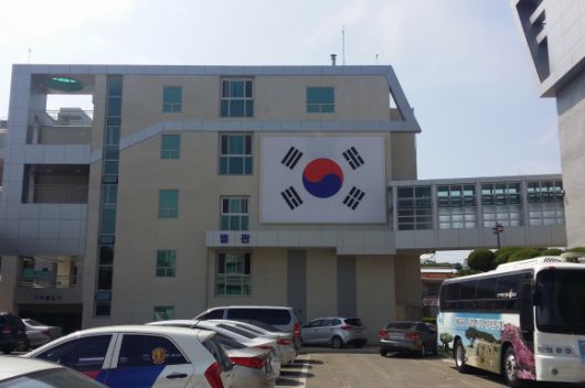 강화군청 외벽에 걸린 태극기 [강화군 제공] |