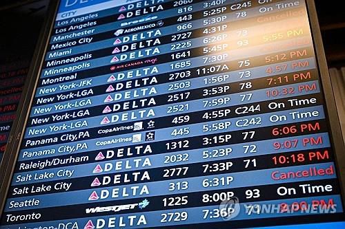 '정보기술(IT) 대란'으로 결항·지연된 항공편 정보 |