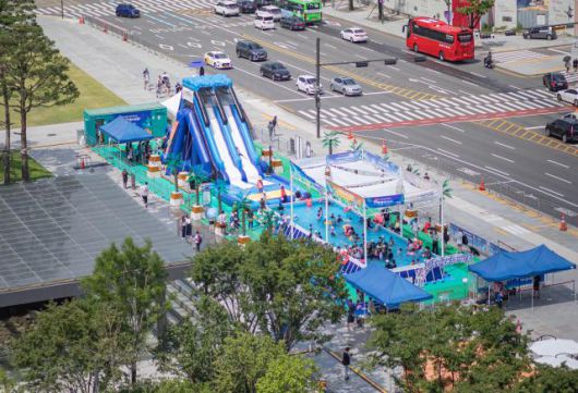 슬라이드와 수영장으로 조성됐던 ‘2023 서울썸머비치’ 전경 [사진=서울관광재단] |