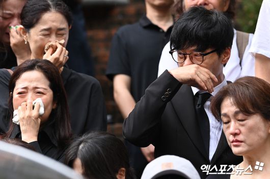 (엑스포츠뉴스 고아라 기자) 암 투병 끝에 별세한 고(故) 김민기의 발인이 24일 오전 서울 종로구 서울대학교병원 장례식장에서 진행됐다. 30여년간 이끌어 온 대학로 소극장 '학전'(현 아르코꿈밭극장) 마당을 찾아 인연을 맺은 이들과 작별 인사를 나눴다. 가수 박학기가 슬퍼하고 있다.고아라 기자 iknow@xportsnews.com