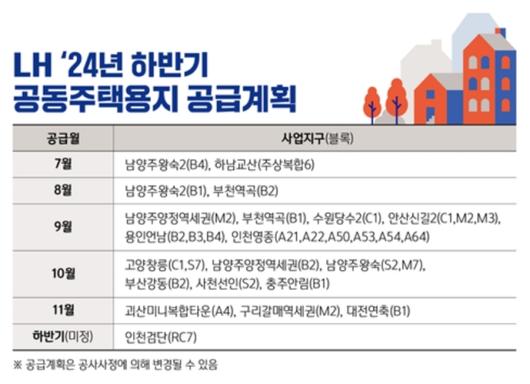 LH 2024년 하반기 공동주택용지 공급계획. [자료=LH] |