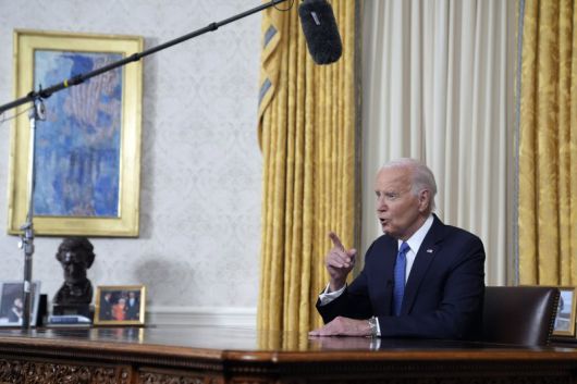미국의 조 바이든 대통령이 24일(현지시간) 미국 워싱턴DC 백악관 집무실에서 대국민 연설을 하고 있다.AP뉴시스 |