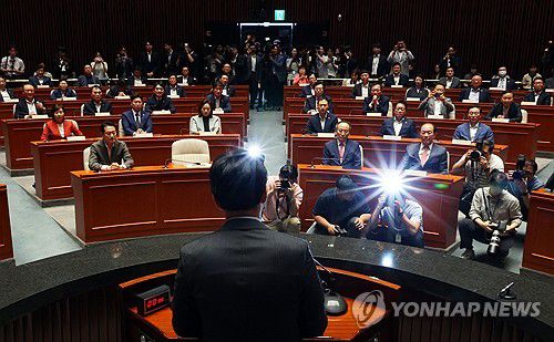 추경호 원내대표는 "우리 108명의 의원이 새 지도부를 중심으로 하나가 돼 거대 야당의 의회 독재에 맞서 한 치의 어긋남도 없이 단일대오로 맞서 싸워야겠다"고 다짐했다.