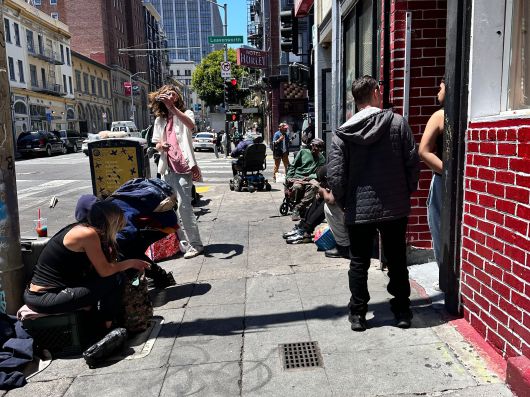지난 22일 샌프란시스코의 우범지대 ‘텐더로인’ 거리에 노숙자와 마약에 취한 사람들이 몰려 있다. 런던 브리드 샌프란시스코 시장은 오는 11월 시장 선거를 앞두고 표심을 위해 마약과의 전쟁을 선포했지만, 상점의 야간 영업을 강제 제한하면서 상인들이 반발하고 있다. /오로라 특파원 |