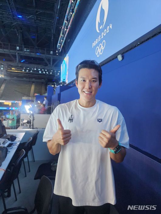 [파리=뉴시스]김희준 기자 = "한국 수영의 유일한 메달리스트요? 내일부터는 유일하지 않게 될텐데요."