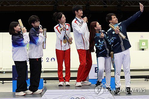 27일 정보통신(IT) 업계에 따르면 박하준-금지현은 이날(현지시간) 프랑스 샤토루 슈팅센터에서 열린 공기소총 10m 혼성 경기에서 은메달을 딴 뒤 시상대에서 메달을 목에 건 모습을 갤럭시 Z플립6을 통해 셀카로 남겼다.