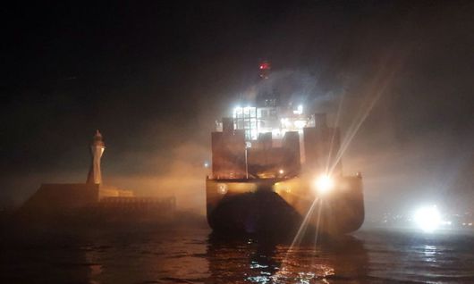28일 부산해양경찰서에 따르면 이날 오전 2시5분쯤 부산 영도구 조도방파제에 부산항으로 입항하던 파나마 국적 컨테이너선(2만738t) A호가 방파제 끝부분 테트라포드와 충돌해 좌초했다.