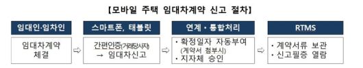 기존에는 주택 임대차계약을 신고할 때 주민 센터에 직접 방문하거나 온라인(PC)만 가능했다. 하지만 앞으로 중개업소 등 임대차계약을 체결한 자리에서 임대인, 임차인이 모바일로 바로 신고할 수 있도록 해 이용자 편의성을 개선할 계획이다.