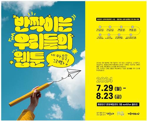 해운대구(구청장 김성수)는 29일부터 오는 8월 23일까지 해운대구 문화복합센터 3층 갤러리에서 청소년 웹툰 애니메이션 작품 전시회 '반짝이는 우리들의 웹툰'을 진행한다.