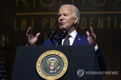 (워싱턴=연합뉴스) 강병철 특파원 = 조 바이든 미국 대통령은 29일(현지시간) 공화당 대선 후보인 도널드 트럼프 전 대통령을 겨냥해 대통령의 면책 특권을 제한하고 대법관 종신제를 폐지해야 한다고 밝혔다.
