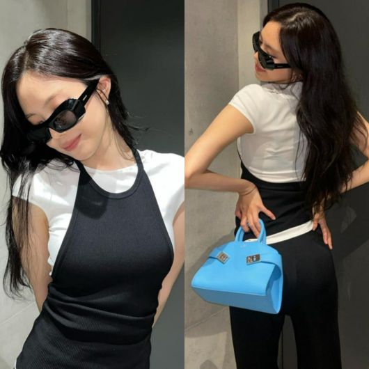 사진 속에서 손나은은 흰색 반팔 티셔츠에 블랙 홀터넥 그리고 블랙 진을 착용해 멋스러움을 드러냈다. 선글라스 역시 블랙으로 매치해 카리스마 있는 모습을 더했다.