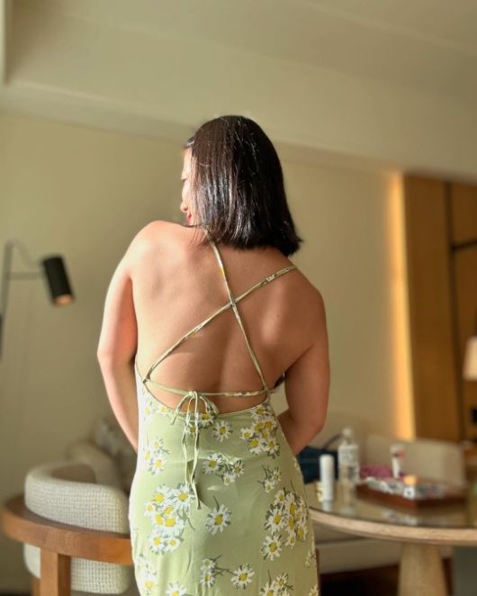 공개된 사진 속에는 박나래의 백리스 원피스를 입은 뒷태가 담겨 있다. 운동으로 다져진 탄탄한 등근육이 보는 이들로 하여금 감탄을 자아낸다.