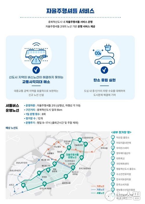 [청주=뉴스핌] 백운학 기자 =충북도가 스마트시티 챌린지 사업의 일환으로 추진 중인 자율주행 버스 운행서비스를 지역 운수사에 이관하며 새로운 자율주행 대중교통 시대를 열었다.