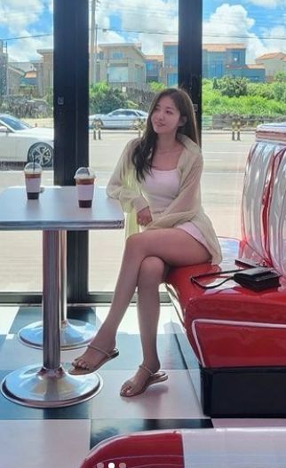 가수 정다경이 제주도에서 독보적인 미모를 뽐냈다.