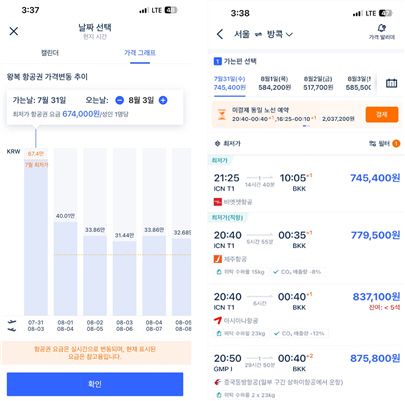 트립닷컴은 작은 글씨로 주의 문구를 적고 최종 결제 금액을 알아보기 쉽게 표시했으나, 가격 그래프에 표시된 최저가와 실제 검색한 항공권의 가격이 약 5~7만 원 정도 차이가 나는 것으로 확인됐다.