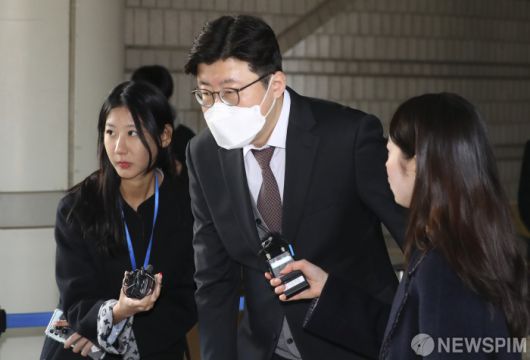 [서울=뉴스핌] 황준선 기자 = 김학의 전 법무부 차관의 출국 시도를 불법으로 금지한 혐의로 재판에 넘겨진 이규원 검사가 15일 서울 서초구 서울중앙지법에서 열린 직권남용권리행사방해(직권남용) 관련 1심 선고 공판에서 일부 혐의 유죄로 징역 4개월의 선고유예를 선고 받은 뒤 법원을 나서고 있다. 2023.02.15 hwang@newspim.com |