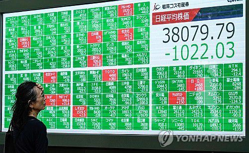 (도쿄=연합뉴스) 박상현 특파원 = 일본 증시 대표 주가지수인 닛케이225 평균주가(닛케이지수)가 2일 오전 미국 뉴욕 증시 급락 영향으로 장중 한때 5%가량 급락했다.