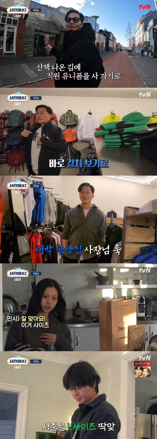 이내 한 가게에 들어간 이서진이 마음에 쏙 드는 옷을 발견했다. 그는 "이거 좋은데?"라면서 바로 착용해 봤다. 곧이어 직원들의 사이즈에 맞게 구매했다.