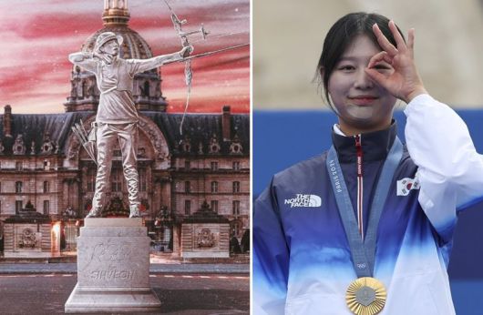 [파이낸셜뉴스] 프랑스 파리 한복판에 양궁 3관왕 임시현의 동상이 세워진 모습이 공개돼 화제다.
