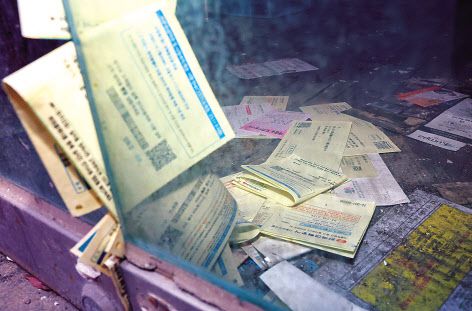 서울 시내 한 거리의 폐업 상점 안에 각종 고지서가 쌓여 있다. [연합] |