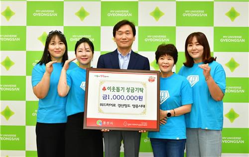 (경산=연합뉴스) 경북 경산시는 트로트 가수 임영웅의 팬클럽인 '워드 히어로 경산청도 영웅시대'가 이웃돕기 성금 100만원을 전달했다고 5일 밝혔다.