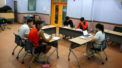 영어 회화 프로그램에 참가한 강원FC 선수들 |