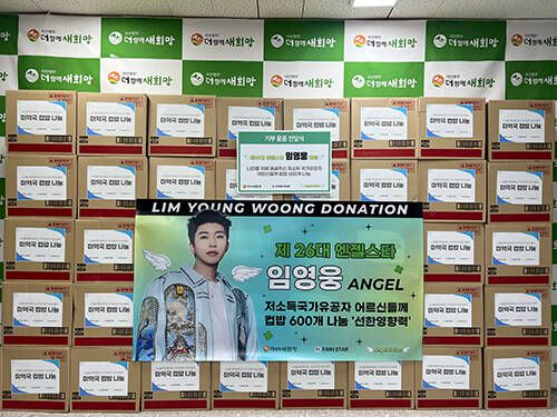 지난 7월 17일 더함께새희망에서 임영웅 팬들로 구성된 임영웅 엔젤의 물품전달식이 진행됐다. 임영웅 엔젤은 '팬앤스타-엔젤앤스타'를 통해 지난 6월 호국보훈의 달을 맞아 국가유공자 어르신들께 미역국 컵밥을 기부하는 프로젝트에 동참했다.