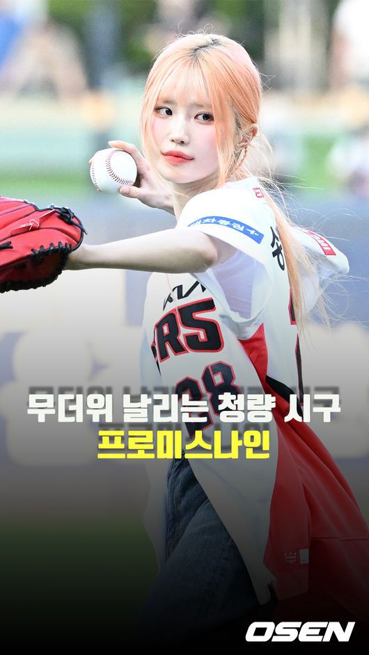 [OSEN=광주, 이대선 기자] 6일 오후 광주-KIA챔피언스필드에서 ‘2024 신한 SOL Bank KBO리그’ KIA 타이거즈와 KT 위즈의 경기가 열렸다. 경기에 앞서 그룹 프로미스나인 송하영과 백지헌이 시구하고 있다. 2024.08.06 /sunday@osen.co.kr