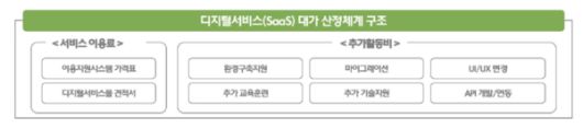 이번 세미나에서 협회는 2023년부터 디지털정부 구현의 핵심인 서비스형 소프트웨어(SaaS) 적정 예산수립을 위해 추진해온 디지털서비스(SaaS) 도입사업 및 통합운영유지관리비 대가체계도 발표했다. 월 이용료(구독료)는 공공요금으로 편성되며, 이용료와 별도로 커스터마이징 등 추가활동에 대한 구체적인 기준을 제시했다.