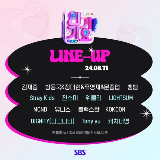 공개된 사진은 11일 오후 2시 50분 방송되는 SBS '인기가요'의 출연진 라인업을 담고 있다.