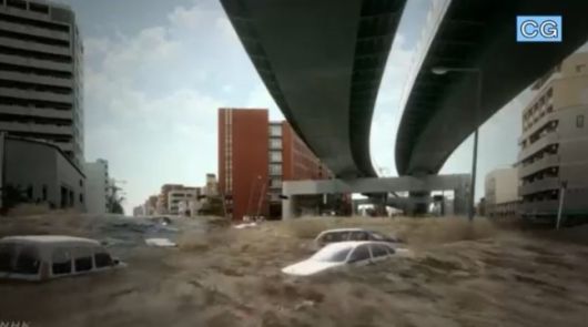 난카이 트로프 대지진 발생 상황을 가정해 NHK가 제작한 CG 동영상. /사진=NHK 화면 캡처 |