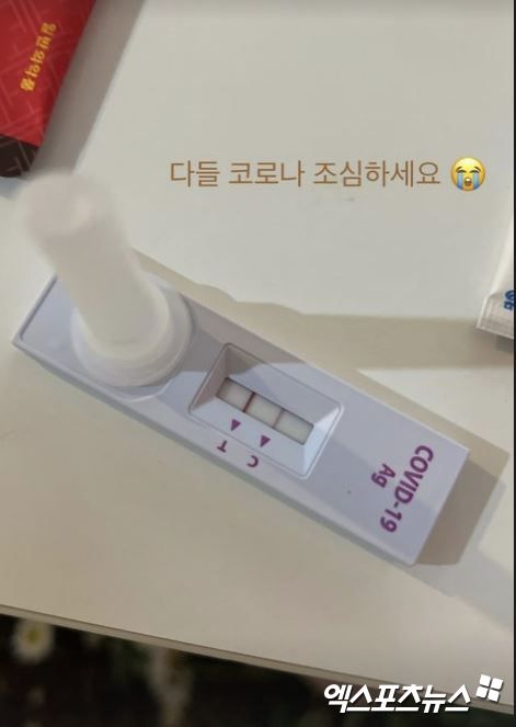 이와 함께 전효성은 코로나19 자가진단키트 사진을 게재하며, 자가검사를 통해 코로나19 확진을 알게 됐다고 알렸다. 전효성이 공개한 자가진단키트에는 두 줄이 선명하게 나타나 있다.