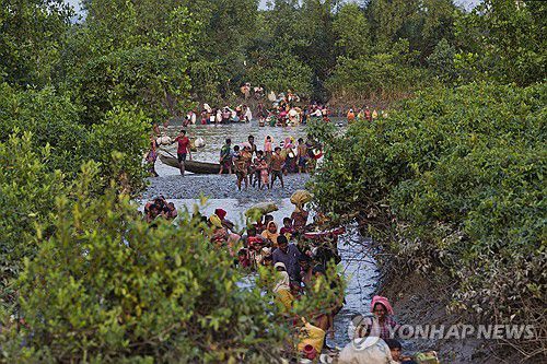 강을 건너 방글라데시로 피난하는 미얀마 소수민족 로힝야족 |