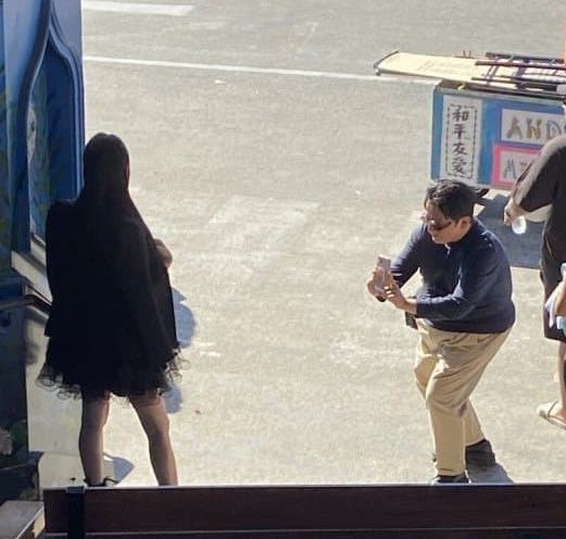 그러면서 "전 화장실 가서 몰랐다. 구도를 잡아주시고, 여기서 찍으면 더 잘 나온다고 알려주시는 과정에서 찍힌 거다. 제가 아니다"라고 덧붙였다.