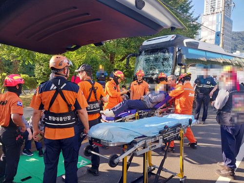 이 사고로 출근하려고 통근버스 2대에 탄 조선업체 노동자 2명이 각각 경추와 팔이 골절돼 중상을 입어 병원으로 이송됐다.