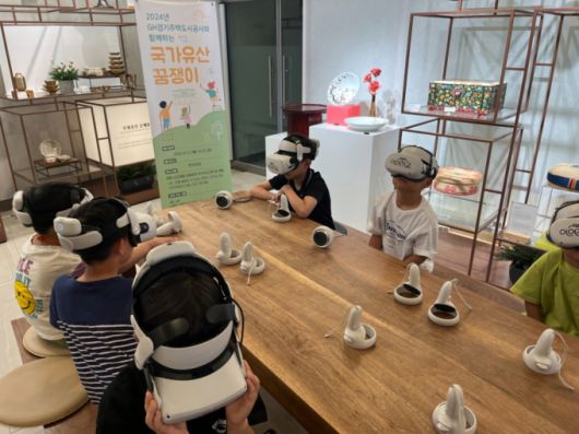 이날 행사에서 어린이들은 AR 기기를 활용한 남해안 공룡화석지 탐험 교육, 경복궁 여행, 무형유산 3D 관람, VR을 활용한 공룡 복원 콘텐츠, 무동 VR영화 등 국가유산을 활용한 디지털 콘텐츠를 체험했다.