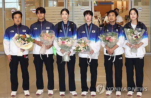 (영종도=연합뉴스) 설하은 기자 = 2024 파리 올림픽에서 금메달 2개를 수확한 태권도 대표팀이 금의환향했다.